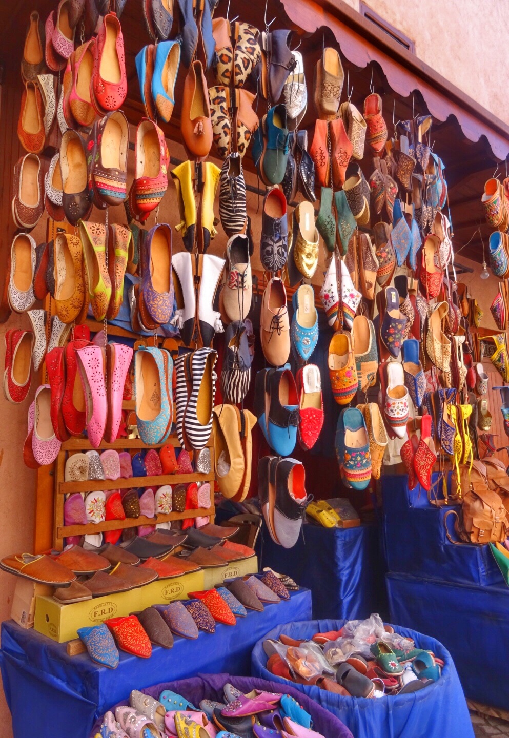 Torniamo verso il centro e iniziamo a girare per le viette del souk, il mercato di Marrakesh, che ci travolgono con i loro colori e sapori! Le stradine sono coperte da una tettoia di paglia ed è un susseguirsi di negozietti che vendono spezie, tajine e piatti di terracotta, tappeti, babbucce in pelle di ogni colore, borse di paglia, olii e lanterne in ferro battuto.