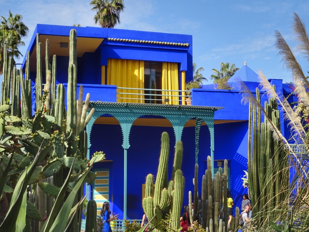 A piedi di buon passo ci vuole all’incirca una mezzoretta. I giardini furono creati nel 1924 dal pittore Jacques Majorelle, successivamente nel 1931 commissionò la costruzione di una villa in stile moresco, dove il primo piano veniva usato come abitazione ed il piano terra come studio per l’artista. Amante della botanica, creó un giardino con svariate piante proveniente da ogni parte del mondo, fontane, laghetti, sentieri e pergolati. Nel 1937 l’artista creó una tonalità nuova di blu, blu Majorelle per l’appunto, intenso e chiaro allo stesso tempo, con cui dipinse la sua casa. Nel 1962 tornato a Parigi, morì ed il giardino rimase per molti anni abbandonato fino a quando Yves Saint Laurent ed il suo compagno lo scoprirono e decisero di comprarlo e farne la loro residenza abituale.
