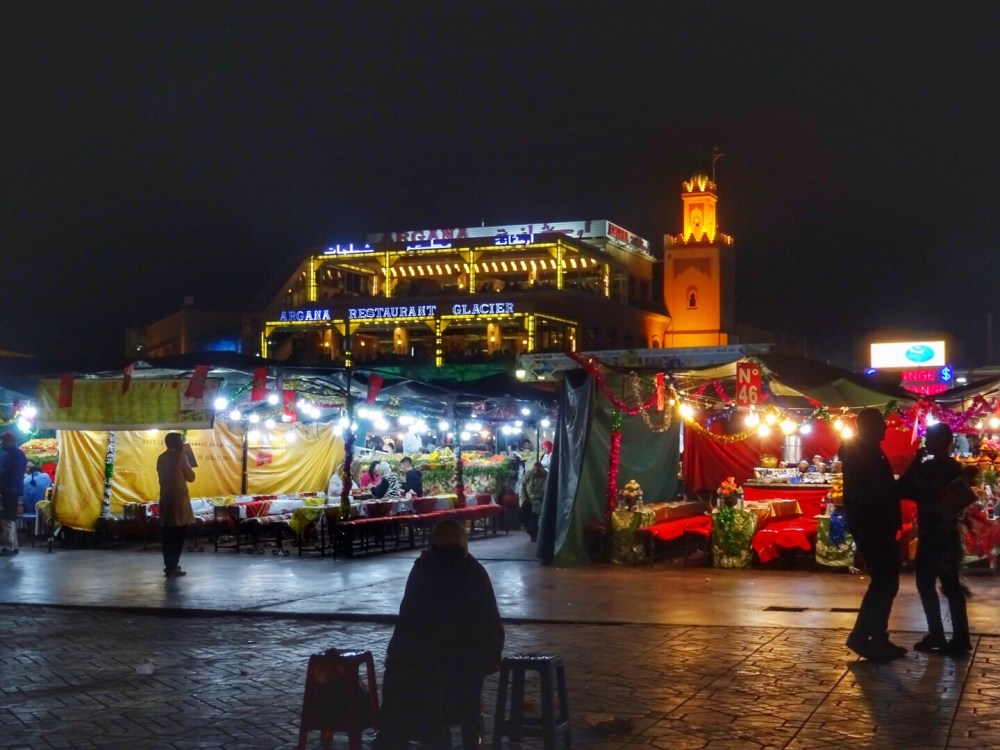 Dopo cena facciamo un giro nella famosa piazza Jamaa el Fna simbolo di Marrakesh. Piena di gente a qualsiasi ora, questa piazza cambia dal giorno alla notte. Qui durante la giornata potrete trovare incantatori di serpenti, venditori di oggetti vari, furgoncini che ti fanno spremute di frutta fresca…per poi trasformarsi di sera in un susseguirsi di bancarelle di cibo, cantastorie, venditori di lanterne e ballerini. La piazza è circondata da tantissimi ristorante e caffè con terrazza per godere all’ora del tramonto e alla sera del suggestivo panorama.