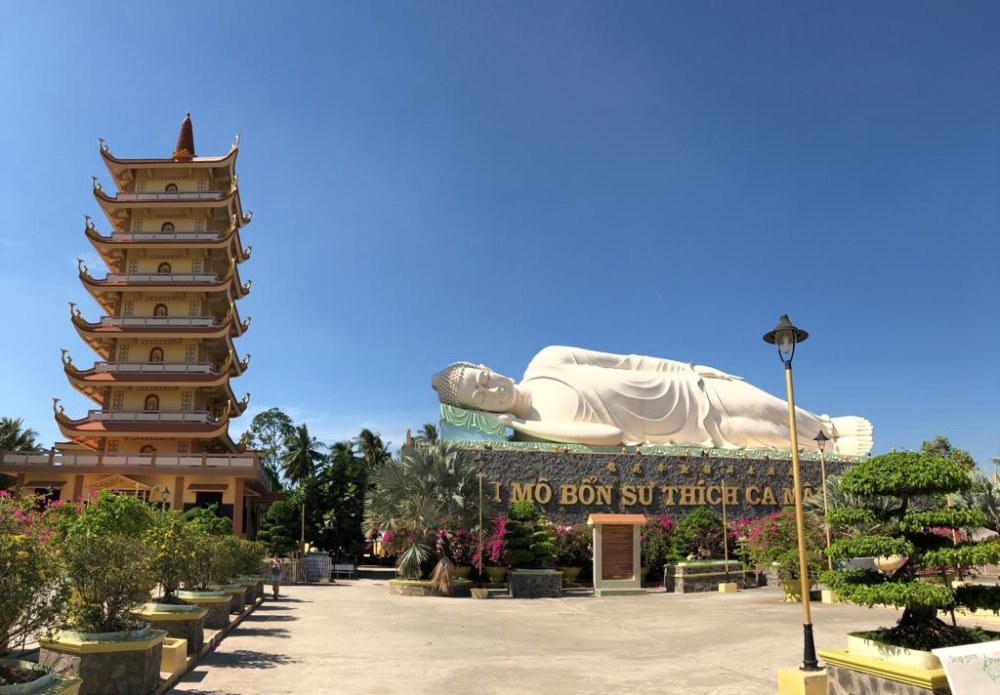 Sosta per il pranzo e rientro sulla terraferma, dove andiamo a visitare l’affascinante tempio buddista di Vinh Trang con l’enorme statua del Buddha sorridente.